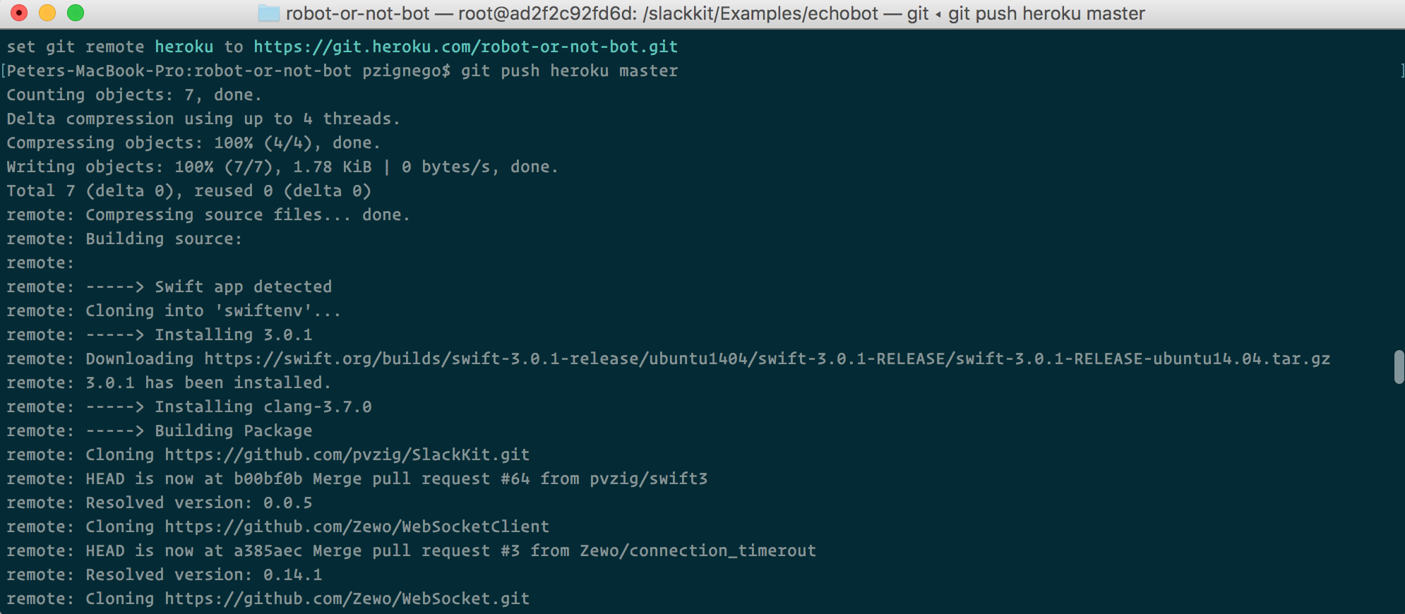 heroku create --buildpack https://github.com/kylef/heroku-buildpack-swift robot-or-not-bot
